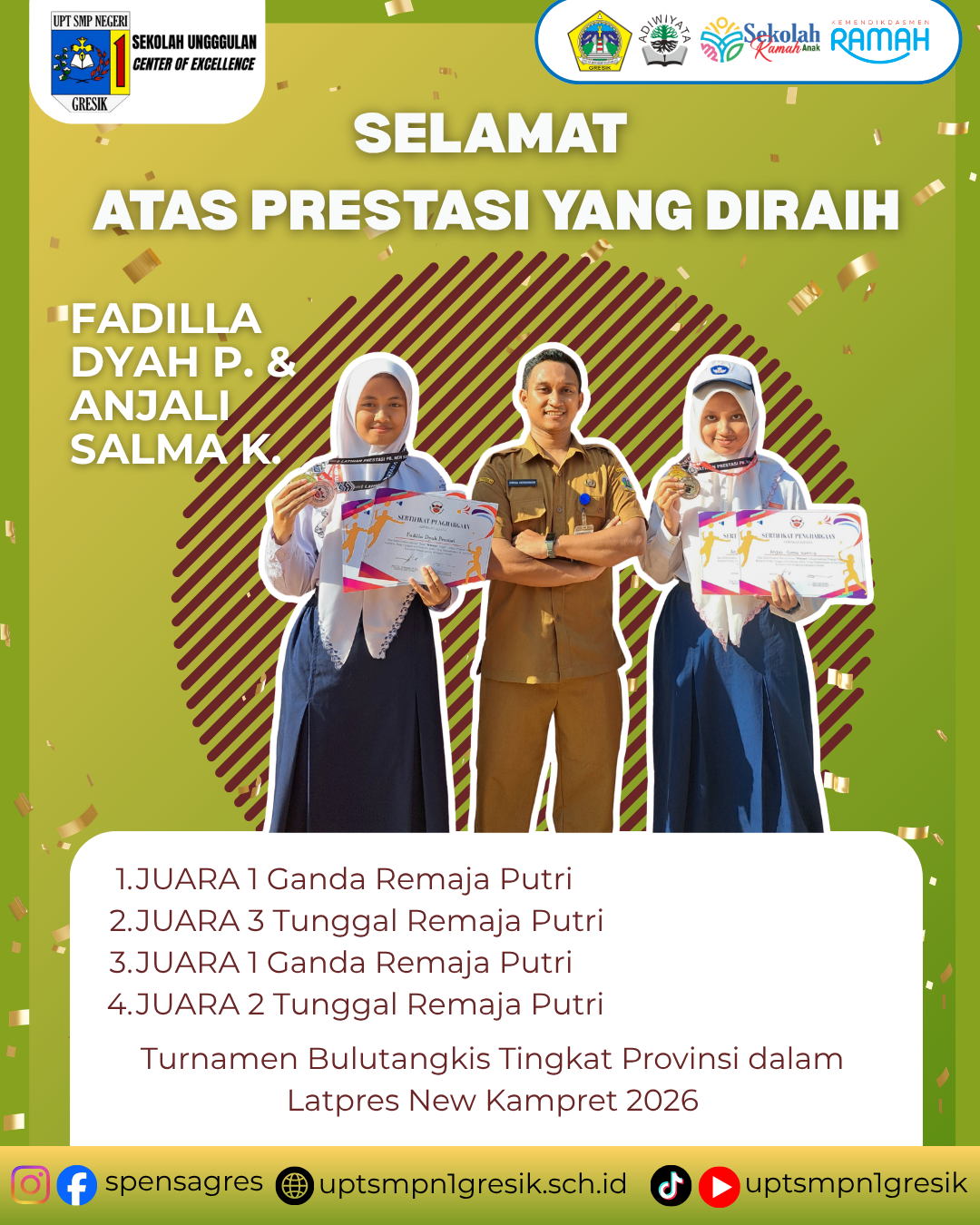 SPENSAGRES PERAIH JUARA 1, 2, dan 3 BULUTANGKIS PUTRI