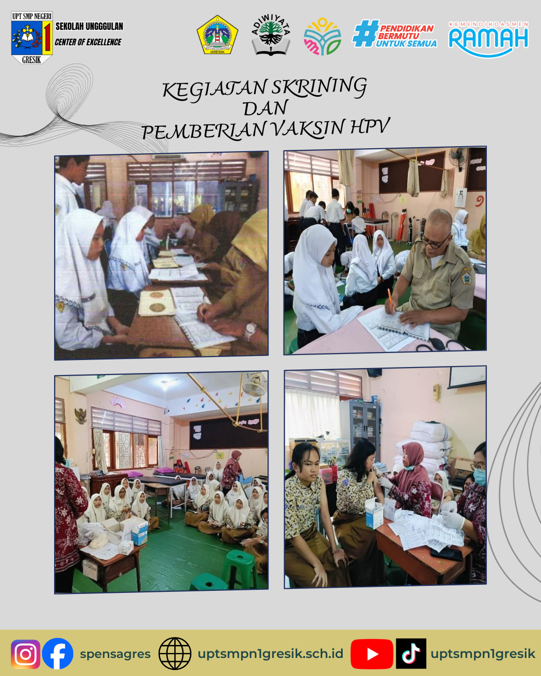 Kegiatan Skrining kesehatan rutin dilaksanakan setiap tahun di UPT SMPN 1 Gresik yang bekerjasama dengan Puskesmas Industri. Skrining kesehatan diperuntukkan…